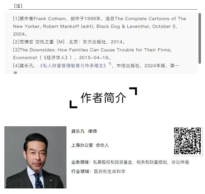 当然,也有正向的成功的案例。笔者在服务一家大型家族企业集团的财富传承规划时看到,作为掌门人的家族控股集团董事长,一方面经过多次调研,选中最合适的外部顾问机构和专家,另一方面,他多次强调,要全面借鉴已经成功四代、五代传承的欧洲家族制度——“我只负责填数字”,“所有的制度,我听你们的”;自己非常谦和,对于专业机构非常敬重,极为认真地学习和理解成功案例背后的底层逻辑。针对该家族进行的制度设计,最终也取得了相当不错的效果。