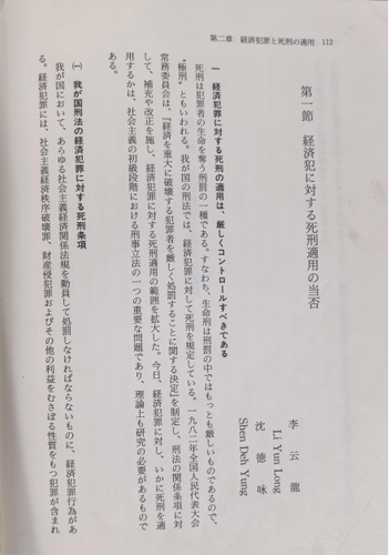 第五本李云龙著作释成日文《中国经济犯罪与死刑适用》,1992 年由日本成文堂出版社出版