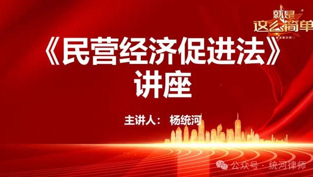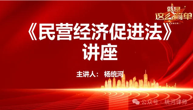 山东统河律师事务所主任杨统河从历史背景、七大变化和未来发展等方面,结合亲办案例,对《民营经济促进法》的73条法律条文进行详细解读。