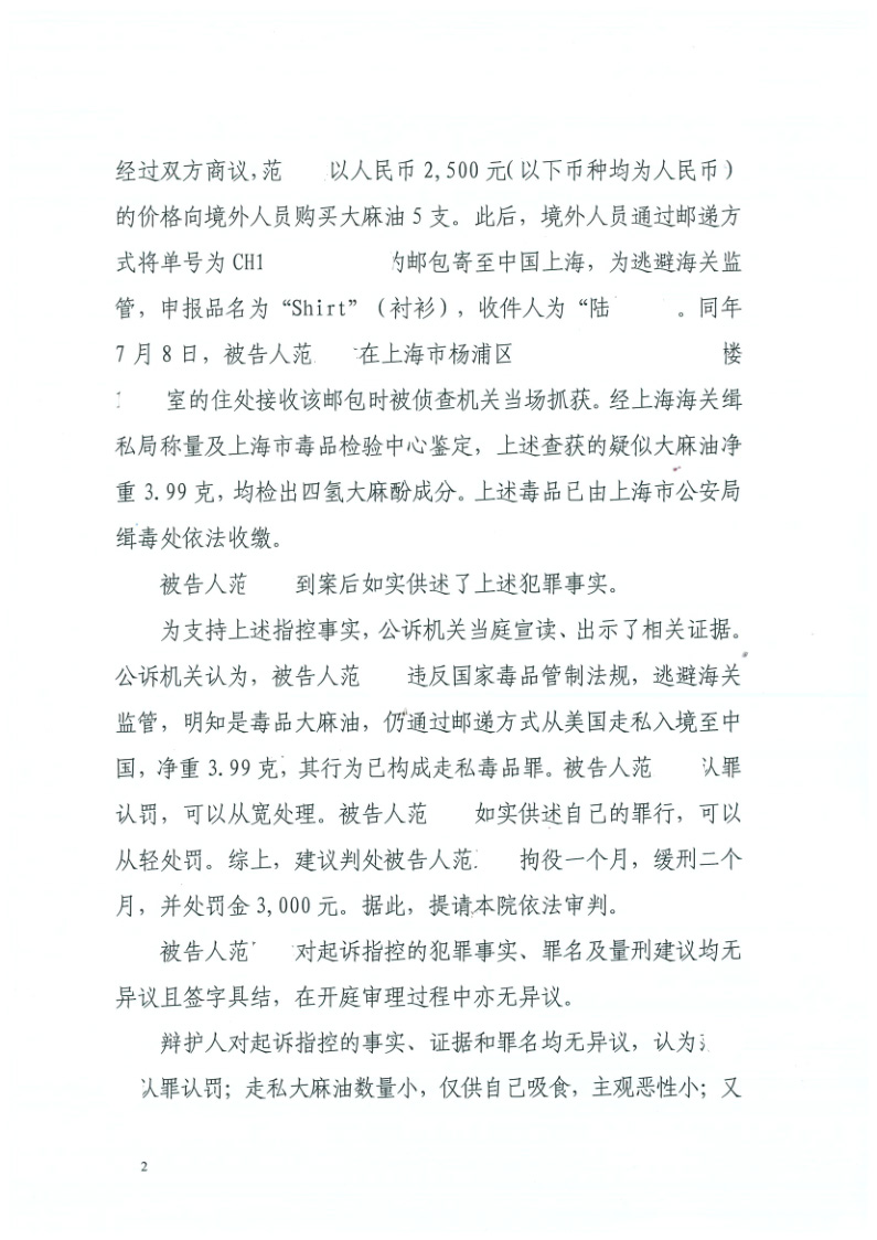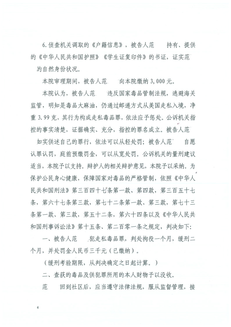走私毒品犯罪,成功取保候审,并以缓刑二个月判决结案。