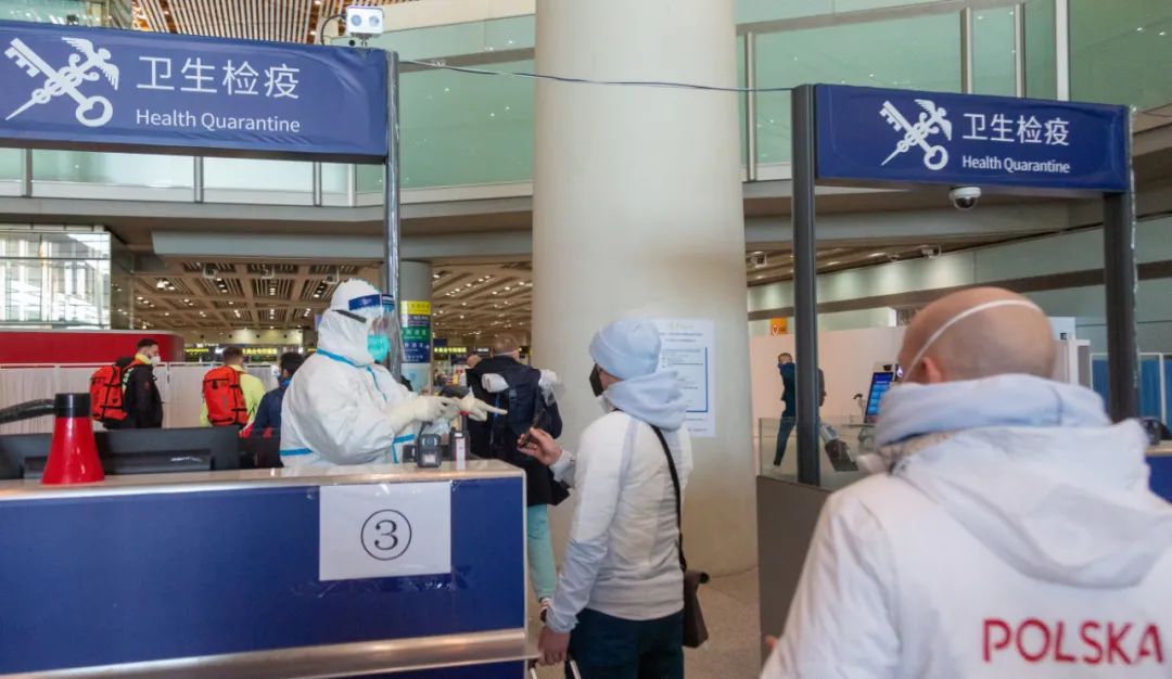 首都机场海关关员正在对出境冬奥人员的健康申明二维码进行验核
