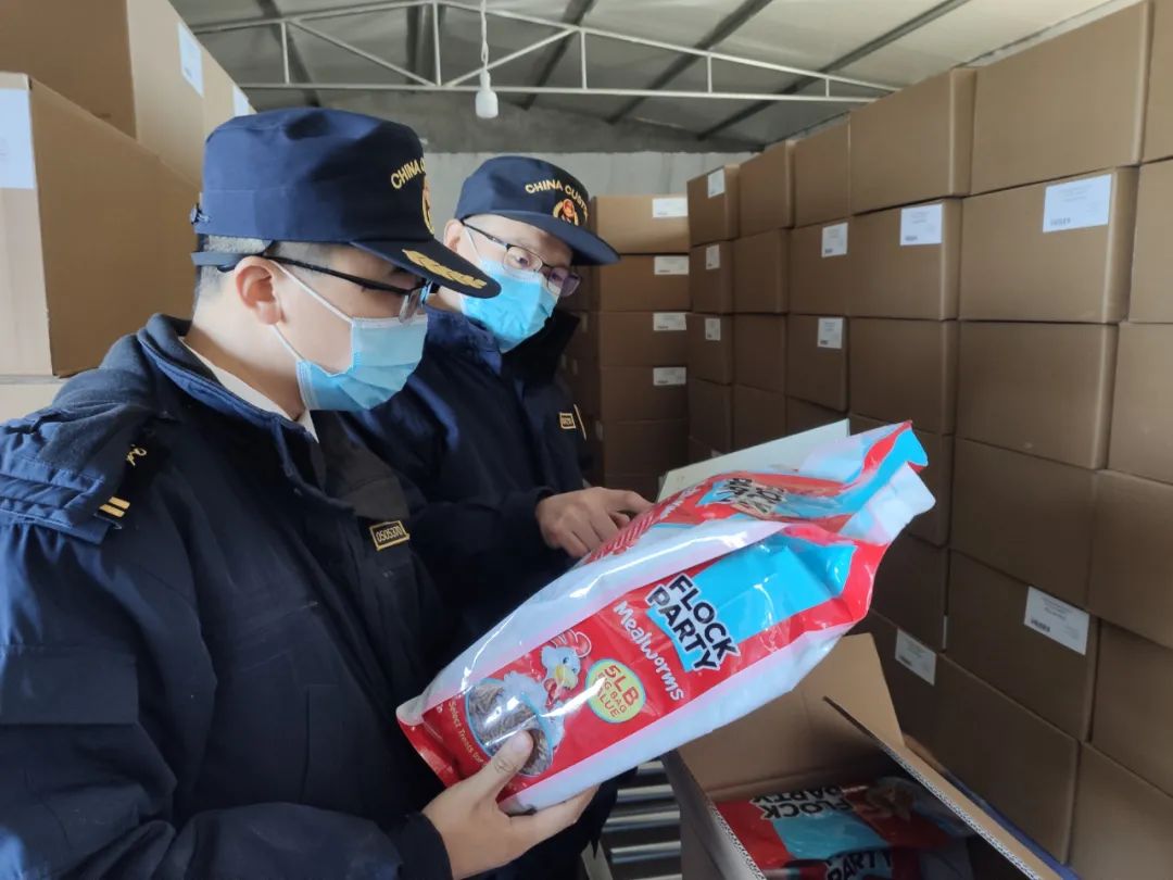 太原海关关员现场查验出口宠物饲料