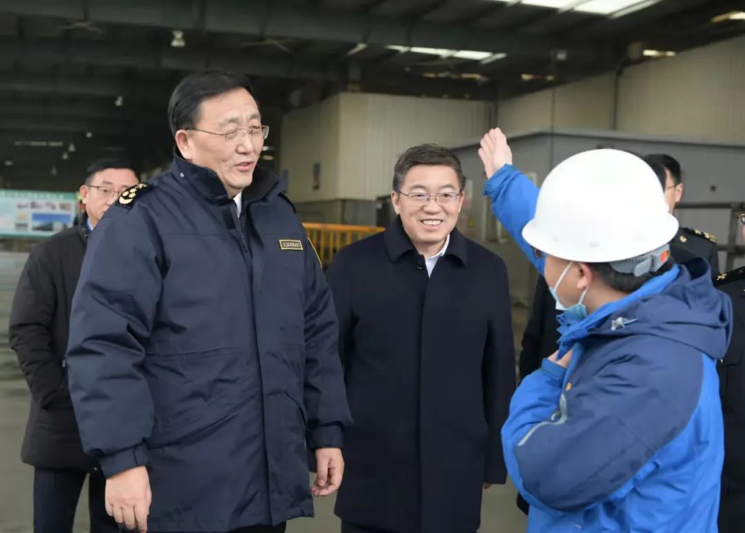 合肥海关关长辛建民(左一)在辖区外贸企业调研