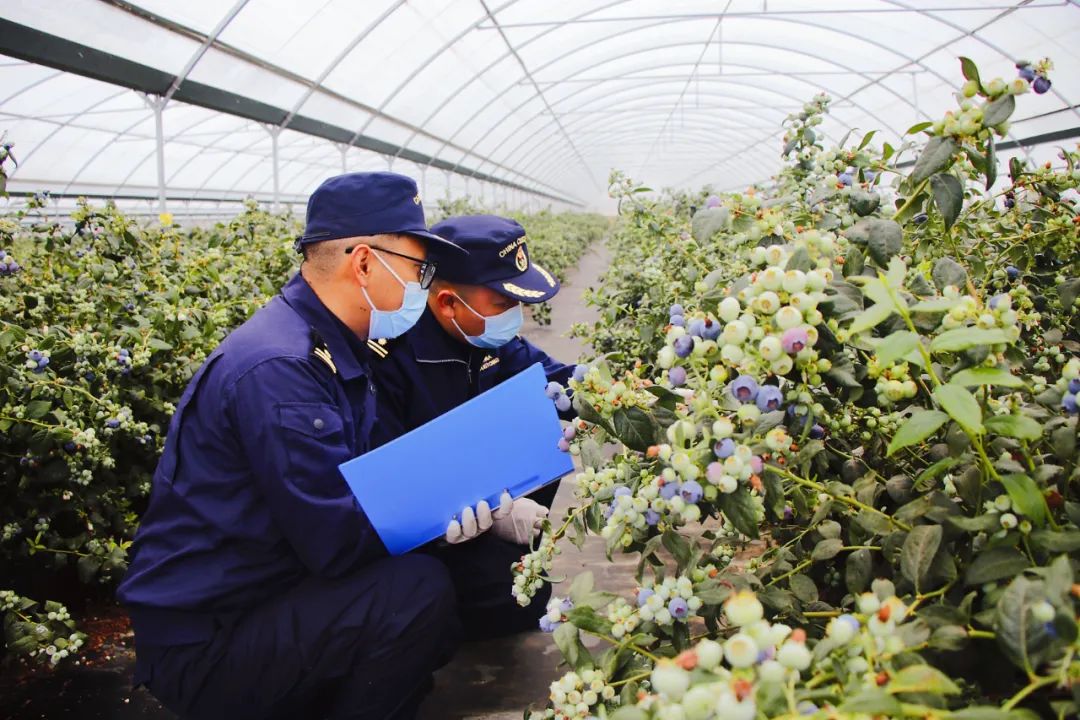 昆明海关关员在出口蓝莓种植基地调研有害生物监测与防控工作情况