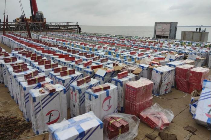近日,某海警局联合当地公安局打私大队、烟草专卖局,查获一起走私香烟案,现场查获走私香烟约2.5万条,查扣机动木筏1艘,抓获涉案人员13名,案值约600万元。