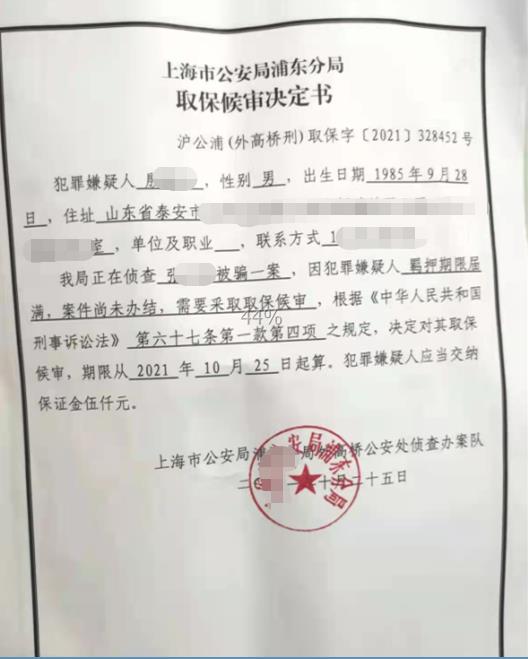 殷某某诈骗一案取保候审