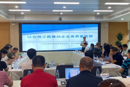 广西万益律师事务所高级合伙人、副主任周化冰律师,合伙人宁振律师做了“推动合规管理·服务企业高质量发展”专题讲座。通过多个代表性案例,详细讲解了合规文化及管理的必要性,旨在积极推进《国务院关于印发“十四五”市场监管现代化规划的通知》(国发【2021】30号)文件精神。多家企业负责人就探寻企业合规经营,助力经贸发展进行了广泛交流。
