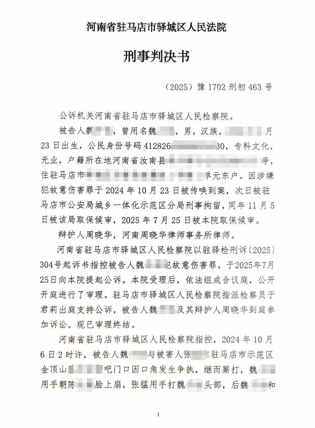 河南省驻马店市驿城区人民法院刑事判决书
