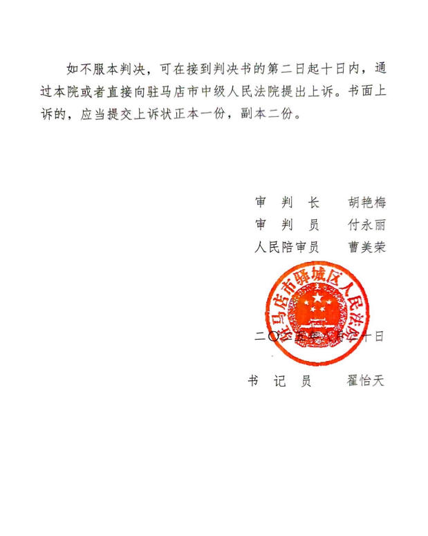 河南省驻马店市驿城区人民法院民事判决书