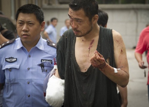2011年9月1日,河北唐山乐亭县,羊角村的两位村干部在岸边拣拾死掉的扇贝,留下证据。当时很多养殖户养殖的海参、扇贝、螃蟹、虾出现了大量的死亡,一开始也不知道什么原因,他们说没有专门知识,也不知道是被溢油污染造成的。第一次投放的小苗被大批死掉之后,他们又第二次补苗,但补苗之后一样还有大量的死亡。