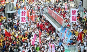 图为1月11日8时左右,江西丰城,大约1000名富士康的工人上街游行,抗议薪资问题和待遇问题。