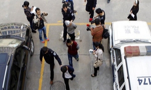 领队被人按在地上打