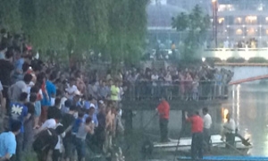 护城河边吹葫芦丝的老者目睹了落水过程。