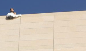 红色马自达突然冲上台阶