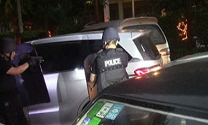 当地时间5月18日下午,中国外逃官员乔建军的前妻赵世兰在美国洛杉矶加州中区联邦法庭首次出庭,并表示不认罪。乔建军曾担任中储粮河南周口直属库主任,2011年11月因涉嫌贪污、挪用公款犯罪外逃至美国,2011年11月14日国际刑警组织发布编号为A-6911/11-2011的红色通缉令通缉。赵世兰2015年3月被美国警方拘捕,并被控以移民欺诈、洗黑钱等罪名。图为赵世兰离开法庭时躲避并阻止记者采访拍摄。
