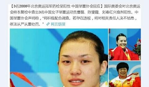 中国3名北京奥运会举重