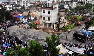 安徽黄山动用300警力拆除占道3年“钉子户”