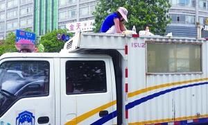女摊贩为拿回被扣铁架 坐城管车顶22小时