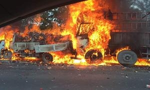 京港澳高速郑州段3车相撞 载酒货车起火