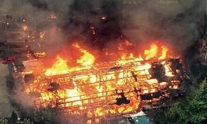 四川一居民楼被烧成空架 现场浓烟滚滚