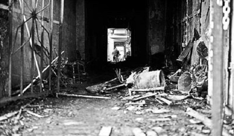 跨过只能容纳一人通过的门,是一个青石铺路,楼榭迎面,水声潺潺的庭院,环境清雅,音乐悠扬。