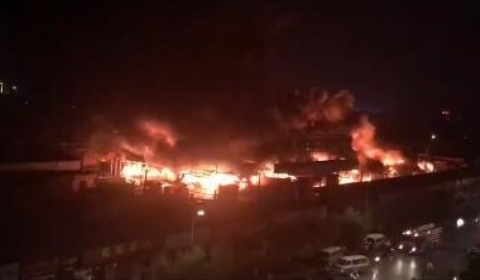 北京回龙观市场附近发生大火 现场一片火海浓烟滚滚