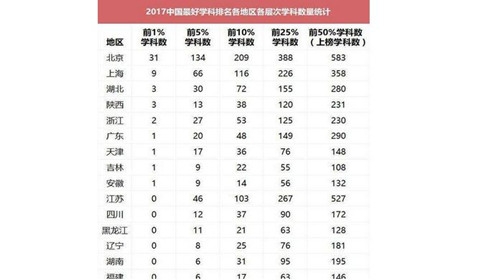 2017年中国最好学科排名:91个头牌学科北京高校占大多数