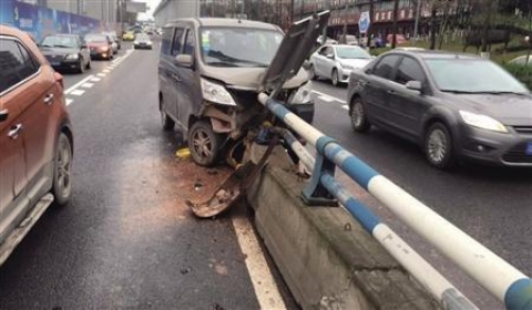 护栏属于公共财产,碰撞护栏造成的损失属于交强险和商业三者险的赔付范围,其中交强险财产损失有责赔偿限额为2000元,超出部分可由商业三者险赔付。