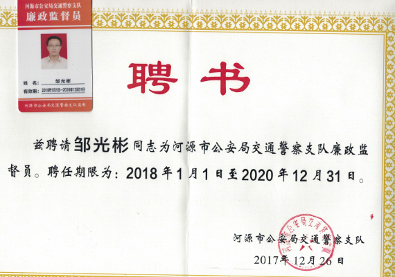 5、河源市公安局交通警察支队廉政监督员