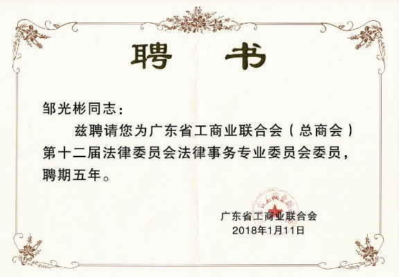 23-省工商联法律委员会委员证书