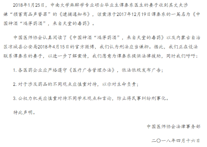 广州医生谭秦东因发文吐槽鸿茅药酒被内蒙古凉城警方以涉嫌损害商品声誉罪跨省抓捕,其后被刑拘、逮捕,并移交检察院审查起诉,结果引发轩然大波。此事疑点重重,损害商品声誉罪的认定如何?是否存在民事案件刑事化?跨省抓捕行为合法吗?医生吐槽鸿茅药酒两千阅读量值得跨省抓捕涉及刑事罪名吗?这些法律问题需要由司法机关来解释。下面,就由大律师网小编为您详细介绍一下案件始末和疑点问题。