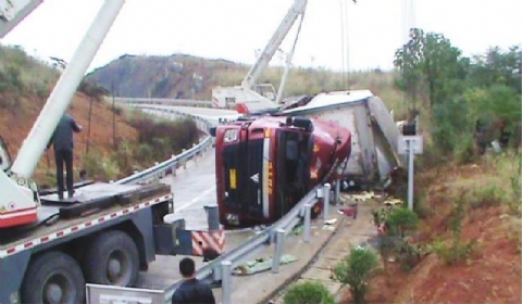 事故造成了驾驶室一侧的车门坏损,因为要开到保险公司去理赔和修理,驾驶员索性拆掉了车门,就这样缓慢地开到了高速路上,并被执法人员发现。