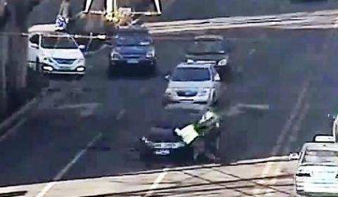 “当时正是下班高峰期,执勤的民警劝说她起来到路边,可是她依然坐在车道上不愿起来,造成了整条道路交通堵塞,我们只好和后来赶到现场的支援民警一起将她抬到路边,随后她就打电话给他男朋友说有人打她,半小时后她男朋友赶到了现场,情绪激动地说了一句‘谁打我女朋友’,当即给了他面前的协警一记耳光。”民警马亮说。