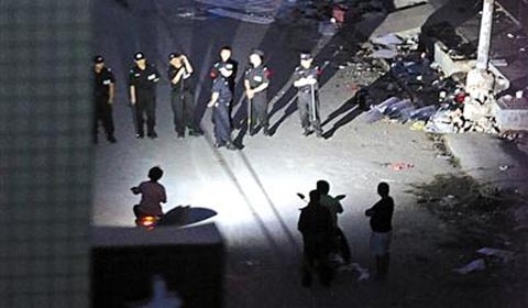 晚11时10分许,经便衣前期侦查,发现涉嫌非法改装车辆正在南湖旁边集结。40多名交警整装赶往南湖旁边,为防止突发事件发生并确保执法行动安全,多名交警佩带左轮手枪。