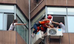 沈阳市苏家屯一准新娘站在15楼阳台上要跳楼,一条腿伸到了窗外,半个身子探了出来……经民警2小时劝说营救,新娘最终放弃轻生念头自行退回屋内。