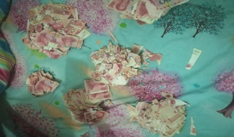 5月20日,山东青岛,市民高先生的5岁孩子在趁家人外出的时候,翻出家里的5万元现金,没多久就将这些现金撕成了碎片。高先生回家后发现这一幕,一时傻了眼,找到银行却被告知无法兑换,如何将这些碎钞拼起来成了难题。
