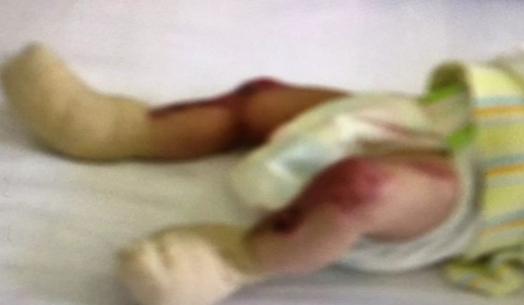 女婴患罕见先天性皮肤缺失症 鲜红的肌肉直接暴露在外