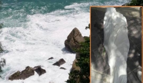 事发当天,一名穿着蓝黄色翼装服的男子在加速跑后,从悬崖上径直跳了下去。谁知,半途中降落伞突然失去了控制,男子臀部撞到了岩石,然后直接跌落在悬崖下的海滩上。