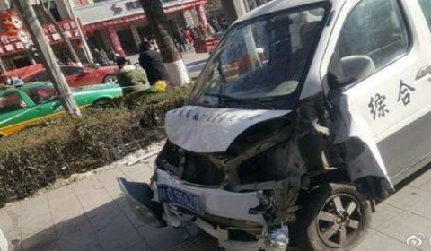 【泥头车冲撞巡逻车】2018年1月14日凌晨,